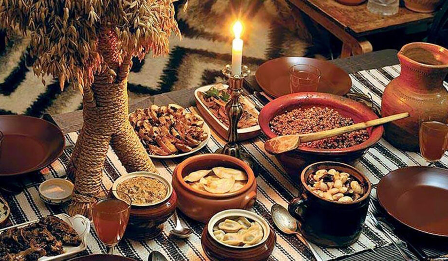 Святвечірня вечеря пісна. Основу столу складають зернові, бобові, гриби, риба, квашені й сушені продукти. Саме такі інгредієнти були доступні взимку і не вимагали складного приготування. Страви чергувалися за смаком, але всі залишалися стриманими й простими.