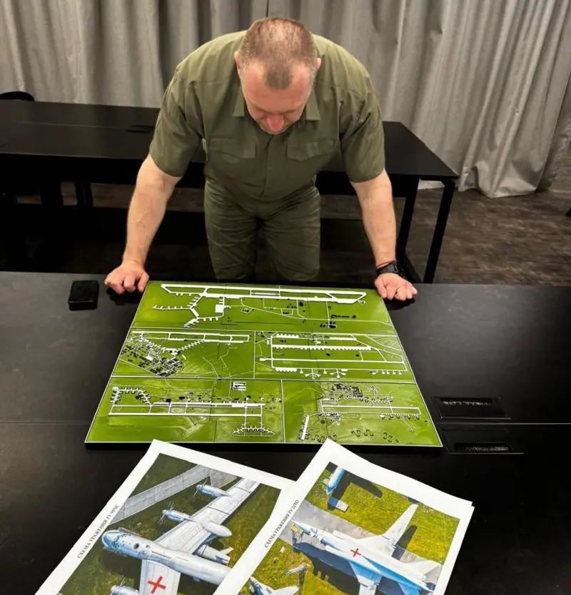 Голова СБУ Василь Малюк біля схем російських військових аеродромів. Операція «Павутина» 1 червня стала найбільшим ударом по російській стратегічній авіації з початку війни. Фото: СБУ