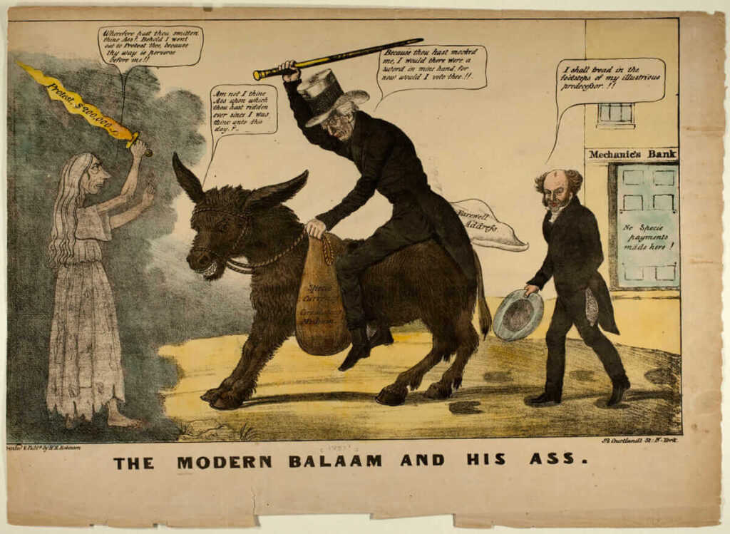 Саме тоді з’явився й символ партії — віслюк. Опоненти Джексона насміхалися, називаючи його «jackass» (осел), але він прийняв це прізвисько як символ упертості та рішучості. Згодом цей образ закріпився у політичній культурі США.
