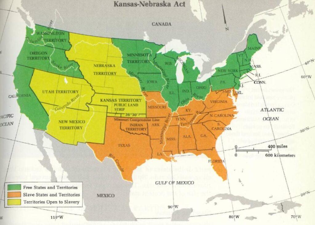Коли в 1854 році Конгрес ухвалив Акт Канзас – Небраска, який дозволяв кожній території самостійно вирішувати, чи дозволяти рабство, ситуація вибухнула. У Канзасі почалися сутички між прибічниками й противниками рабства — період, який увійшов в історію як «Кривавий Канзас».