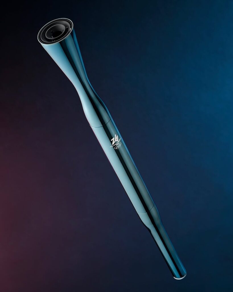 Факел Ігор 2026 року – це вже окрема історія. Його створили Studio Carlo Ratti Associati та Cavagna Group. Він має витягнуту форму, зроблений переважно з перероблених матеріалів, а уздовж корпусу тягнеться поздовжній виріз, що відкриває механізм полум’я. Олімпійська версія виконана в синьому кольорі, паралімпійська – у бронзовому.