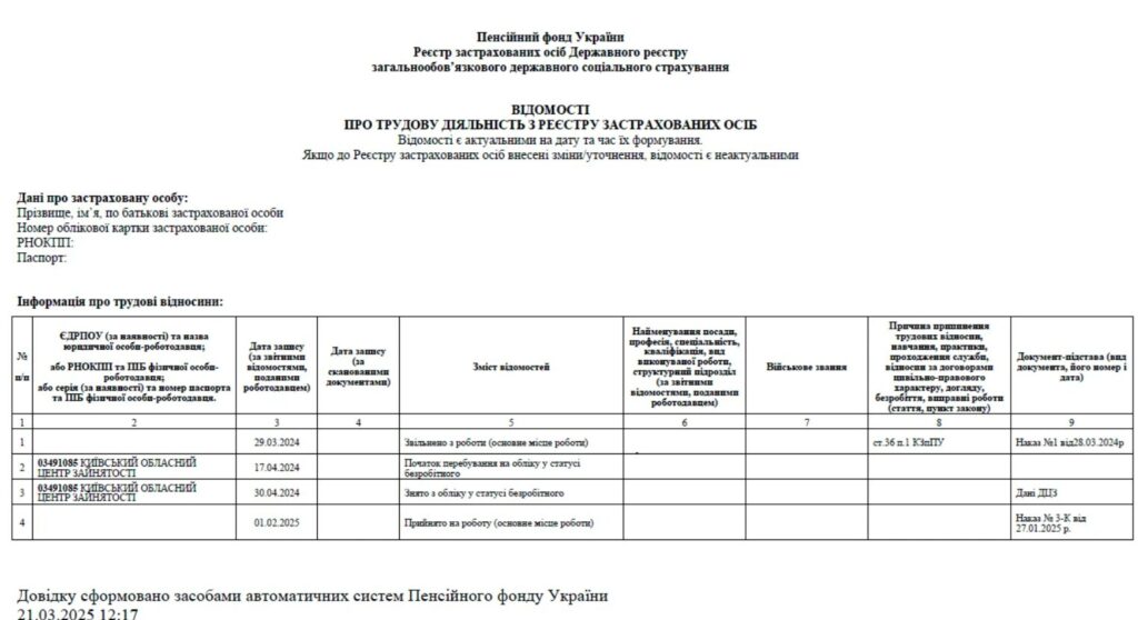 - Заповнює електронну форму на порталі Пенсійного фонду — вносить усі відомості про твою трудову діяльність.